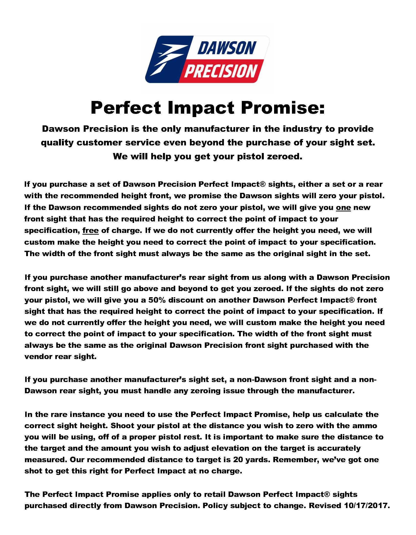 Choose the Dawson Precision Perfect Impact® sight height closest to this impact corrected front sight height.